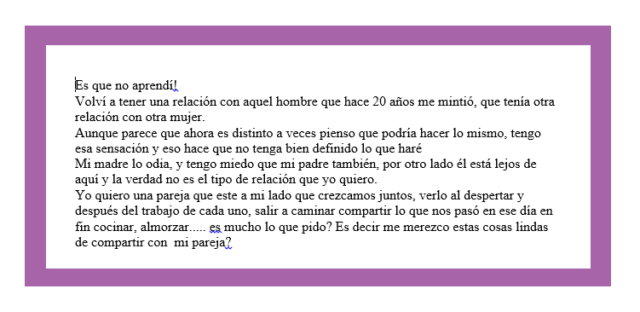 - Liberar a la autora del poder que el secreto ha tenido sobre ella. Expresarlo le hace perder fuerza, librándote de su agarre.